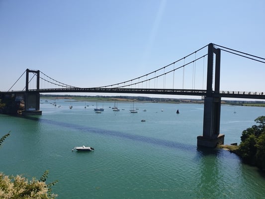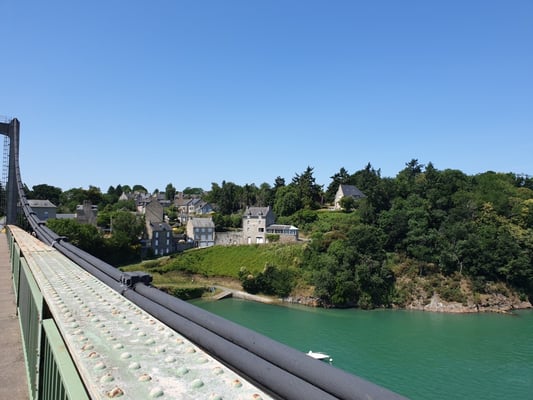 Rance Tidal Power Station, impressive. The boatyard in La Richardais (sweet long time memories). A mill on an affluent of the Rance. A modern church.